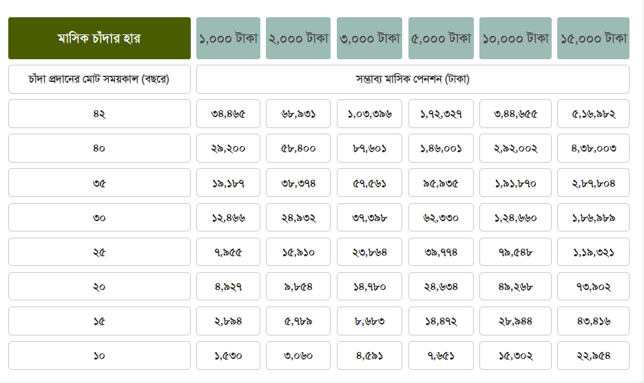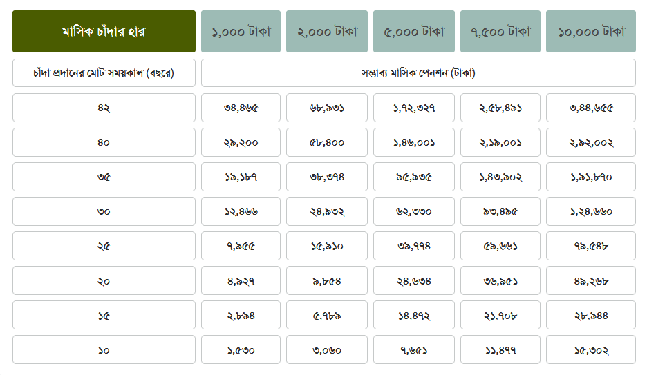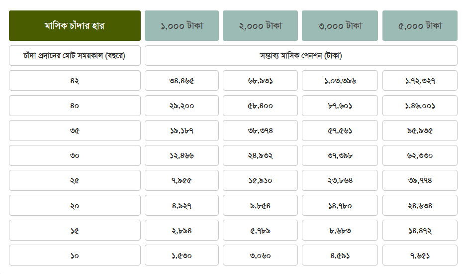 বাংলাদেশ পরিসংখ্যান ব্যুরো কর্তৃক সময়ে সময়ে প্রকাশিত আয় সীমার ভিত্তিতে দারিদ্র্য সীমার নীচে বসবাসকারী স্বল্প আয়ের ব্যক্তিগণ [যাদের বর্তমান আয় সীমা বাৎসরিক অনুর্ধ্ব ৬০(ষাট) হাজার টাকা] নির্দিষ্ট হারে জমা প্রদানপূর্বক এ স্কিমে অংশগ্রহণ করতে পারবেন। এ স্কিমে সরকার কর্তৃক সম পরিমান অর্থ অনুদান হিসেবে দেয়া হবে।